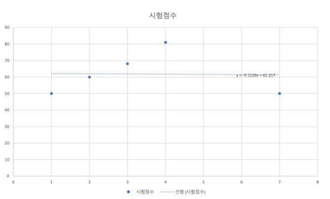 처음 그래프처럼 균일하게 오르는게 아닌 커피7잔을 마시고 한숨도 못자서 50점을 받게