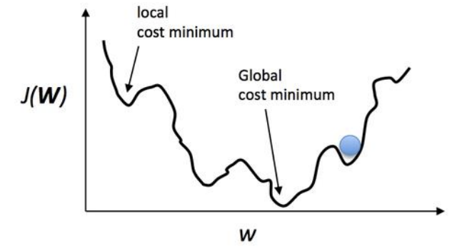 손실 함수의 최소점인 Global cost minimum을 찾는다.