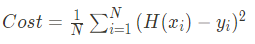 H(x) 는 가정한 직선, y는 정답포인트라고 했을때, H(x)와 y의 거리(차의 절대값)가 최소가 되어야