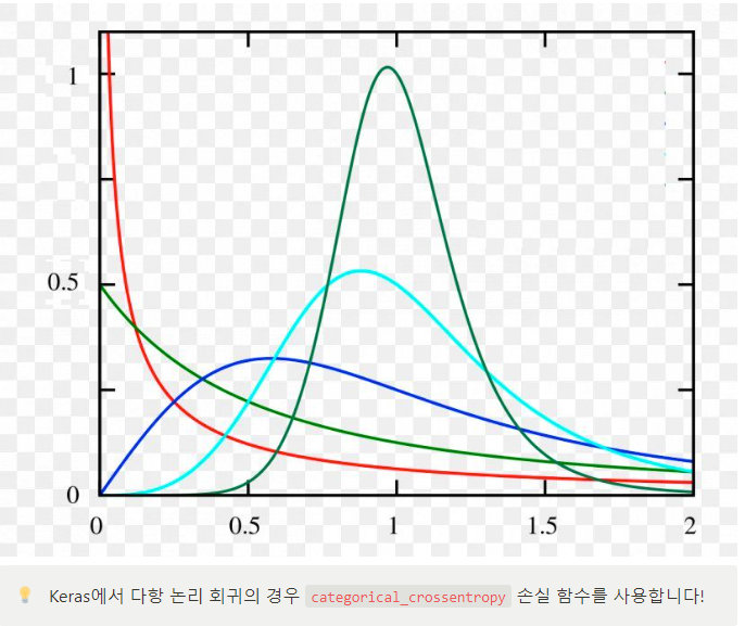 다항 논리 회귀 : 클래스가 여러개로 나뉘고, softmax함수사용, categorical_crossentropy 손실함수 사용