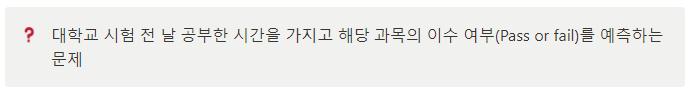 이진논리회귀 : 이수, 미이수, Pass, fail 과 같은 출력값이 0 아니면 1 두가지인 경우