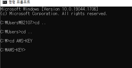 권한으로 실행을 하고 AWS-KEY파일로 이동을 해준다.